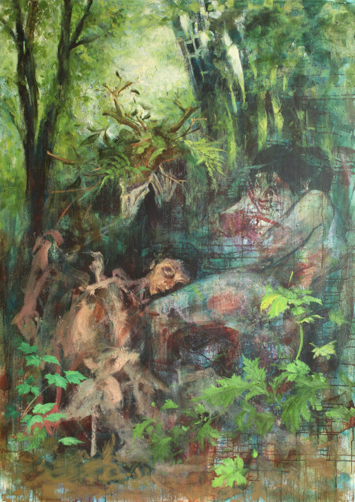 A través de la experimentación con la abstracción y la figuración, intento visibilizar la inestabilidad y fluidez de las cosas. Utilizando técnicas como la pintura al óleo, el dibujo y la acuarela, construyo escenarios sugestivos donde habitan cuerpos y paisajes fragmentados, que en su conjunto construyen y destruyen un relato que contenga nuestra experiencia. Un relato, por lo demás, inconcluso, azaroso, y que transgrede sus propios límites.